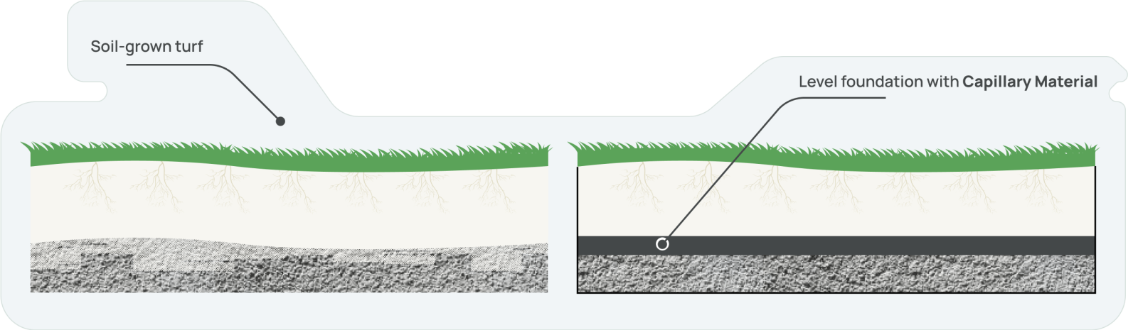 Controlling the water, carbon dioxide and oxygen levels for various soil profiles in these spaces is a major challenge. Our proprietary CapillaryFlow technology offers a simple solution that ensures optimal moisture levels and good drainage regardless of the weather conditions.