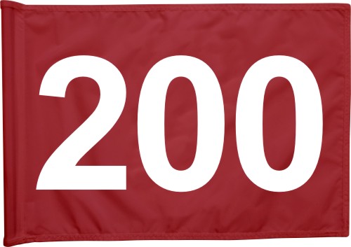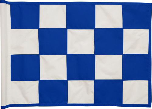 18" x 25" Tube style flags, ready to go on your greens, no extra hardware needed, slip over top of pin, held on with screw on acorn nut on top. Also available numbered and with embroidered names.