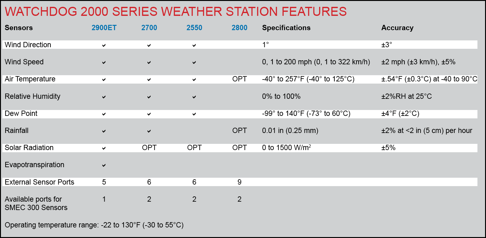 • Full-featured weather stations measure temperature, humidity, rain, wind and solar radiation (varies by model)